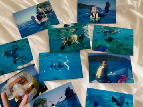 この度は3歳からできるクマノミ城バナナボート&シュノーケリング 午前コースにご参加いただきまして誠にありがとうございます。8歳の息子さんのシュノーケリングデビューが素敵な思い出になったようで、スタッフ一同とても嬉しく思います。すてきなお写真もたくさんわざわざありがとうございます。シュノーケリングポイントによっては、見られるお魚も違うので是非またご参加いただければと思います。