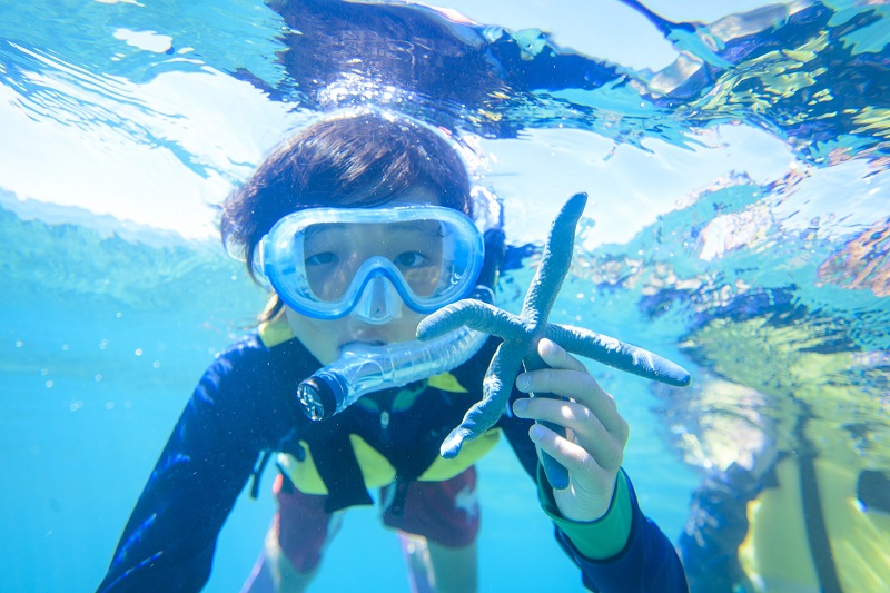 - 沢山の熱帯魚・サンゴが生息するエリアで海の星スターフィッシュ(アオヒトデ)を探そう
