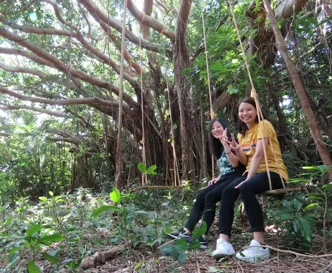 大きなガジュマルの木”多幸の樹”と 写真を撮って素敵な思い出に♪ 大自然の中でさんぴん茶を用意しております。