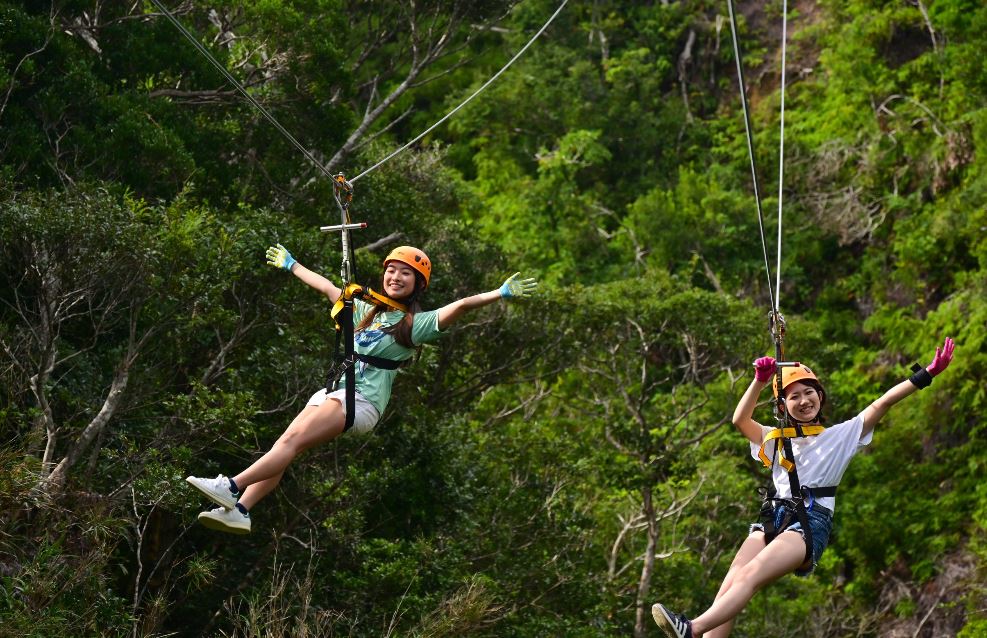 沖縄の新しいタイプの山遊び - 1本約80メートルから140メートルの距離のジップラインを