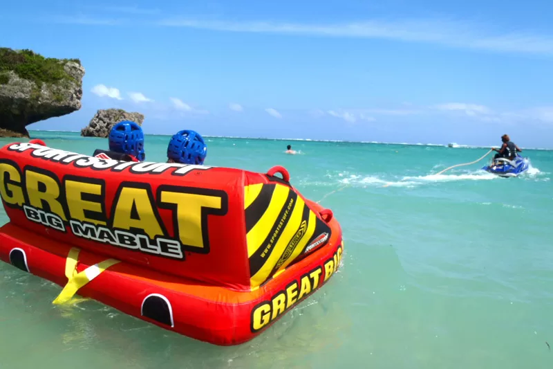ツアーコード:LMBM5 【南城市】バナナボート&ビックマーブル(Aコース) バナナボート&ビックマーブル/5便 開始時間:14:00