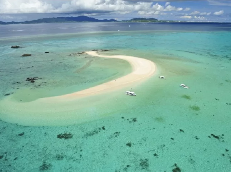 潮が引いた時に現れる三日月形の無人島「浜島」へ上陸 360度に広がる大パノラマの絶景をご堪能ください。