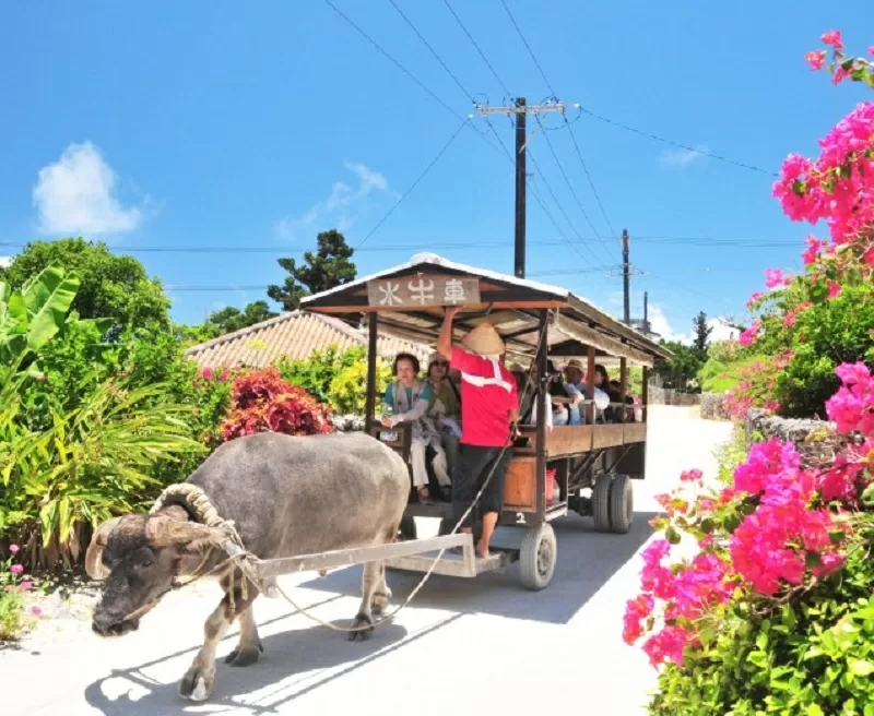 ・午後からは竹富島に渡って、沖縄の原風景が残る町並みを水牛車でのんびりと♪