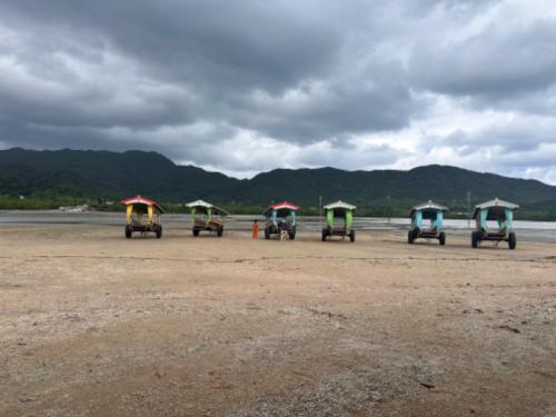 バス観光:カイジ浜での星砂探しやコンドイビーチ(車窓)を見学。