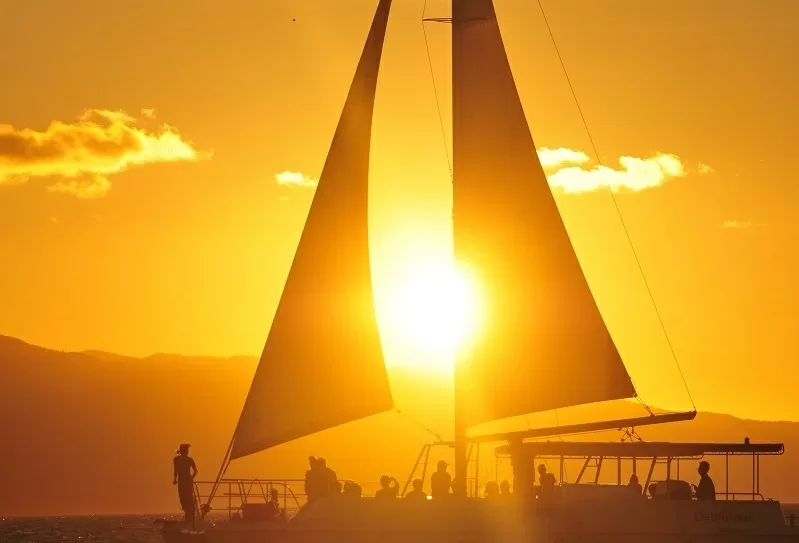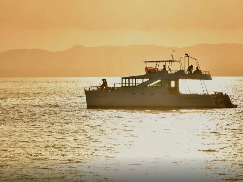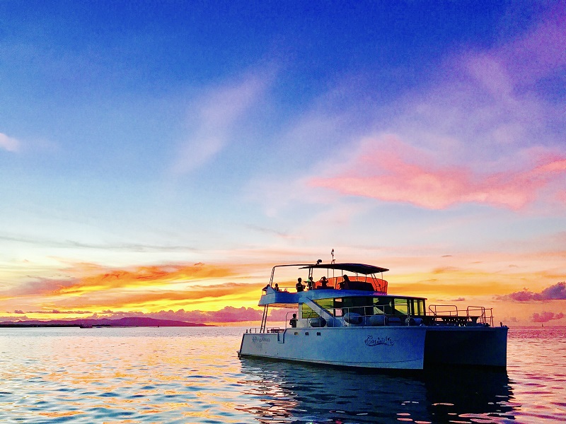昼間は眩し過ぎて見る事が出来ない南国の太陽も、夕方になると優しく私たちを照らし、景色を赤色に染めていきます。刻々と変わっていく海の色、空の色、雲の色の変化を感じながらクルージングをお楽しみください。 - ビーチから眺める夕日とはひと味違う!