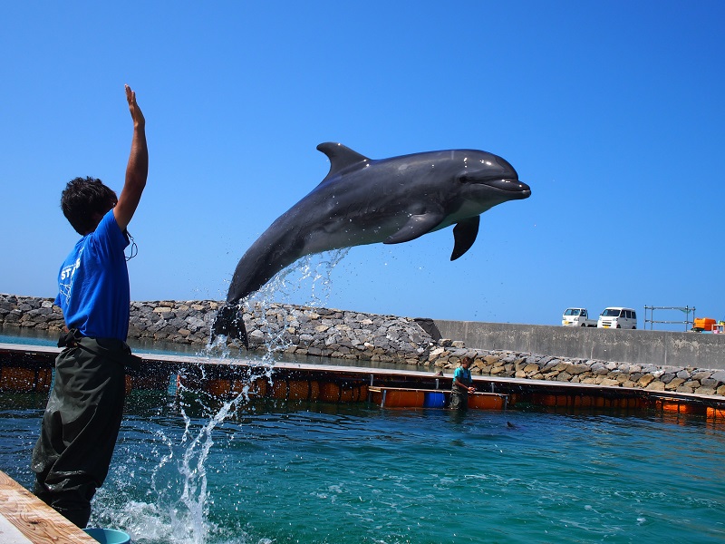 イルカがジャンプをした場合の水しぶき等には充分ご注意ください。