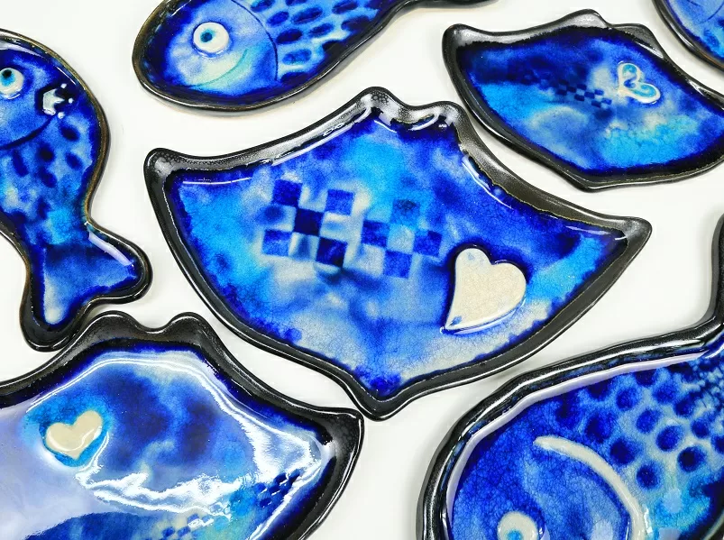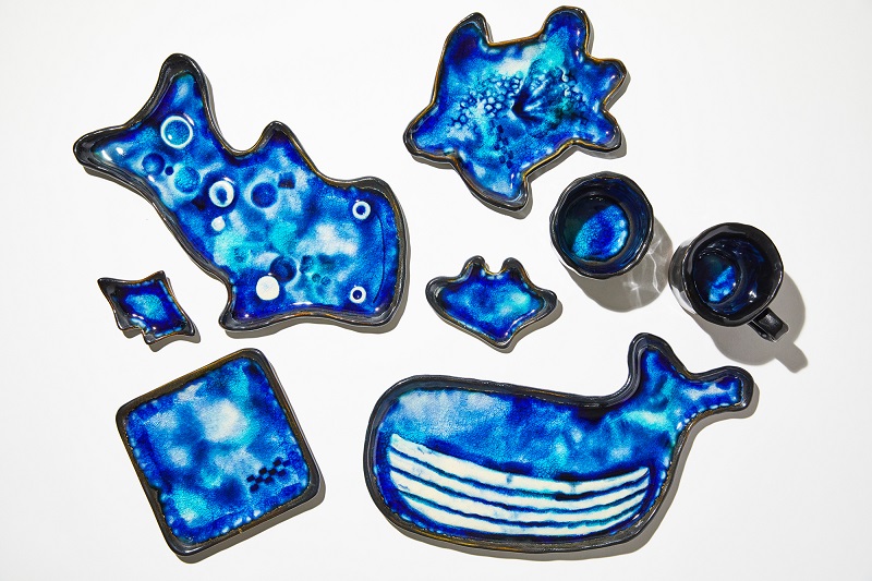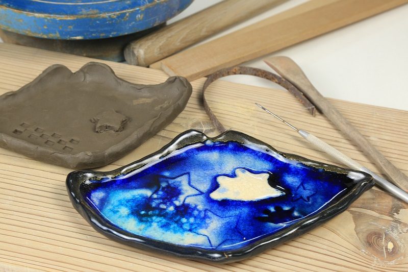 - 陶器とガラスの融合。天然石からの成分のみで自然発色するという独自の技法を用いる為、唯一無二の輝きです。(体験陶芸では、お皿、湯呑、茶碗、マグカップなどが作れます。)