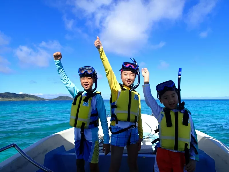 - はい。ご参加可能です。小さなお子様でもスタッフが引っ張る大きなフロートに掴まって水中世界を覗き熱帯魚を観賞することができます。まだマスクをつけれないお顔が小さなお子様や、ちょっぴり怖がりなお子様にはシュノーケル用マスクの代わりに浮き輪と箱メガネもご用意できます。