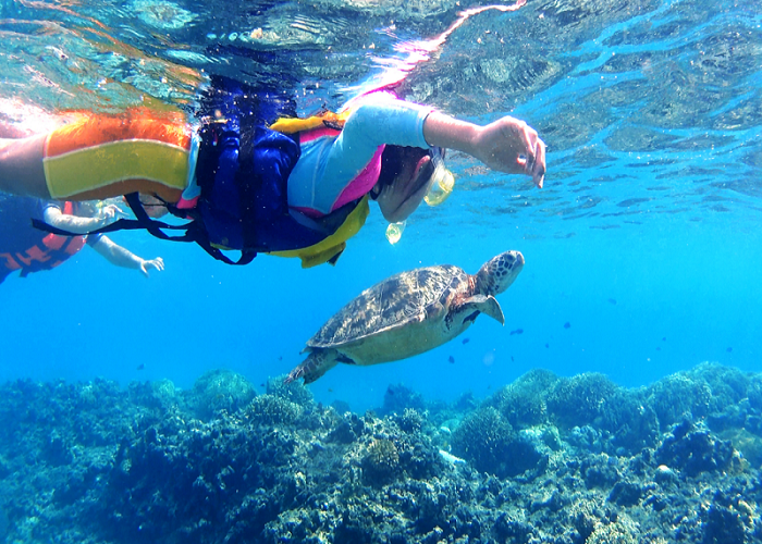 ビーチからのシュノーケリングでも比較的高確率でウミガメに会えるといわれています。