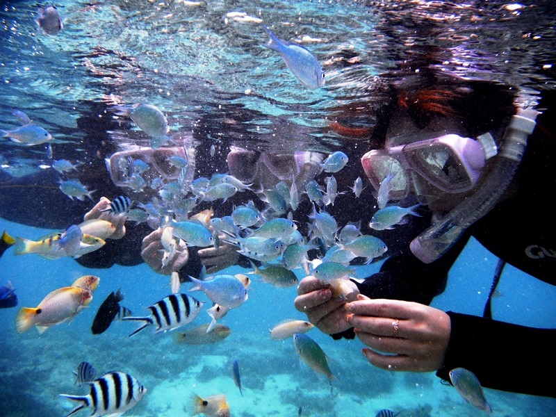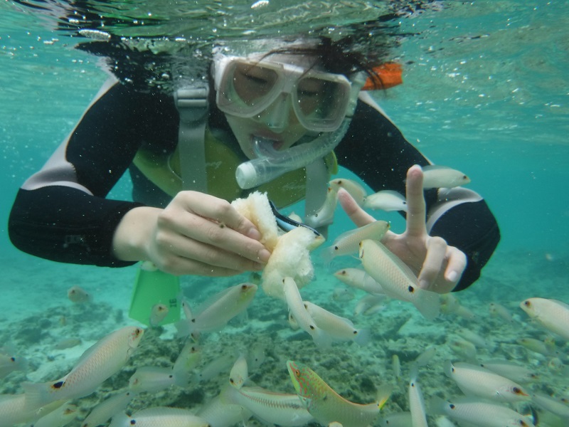 お魚ポイントでスノーケル&餌付け体験付。(約50分)