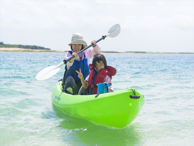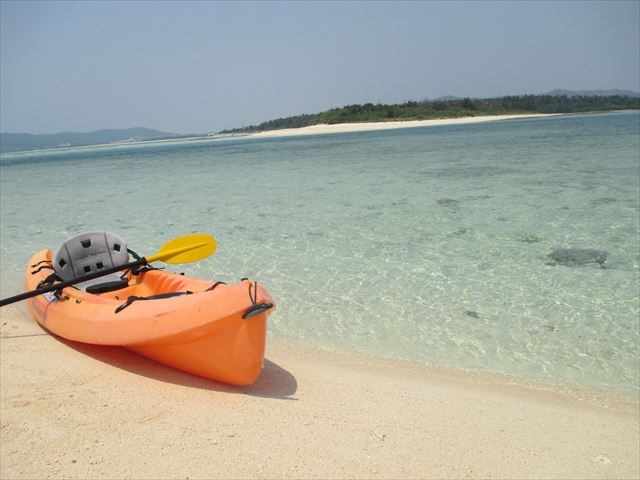 - 二人乗りのシットオンタイプというカヤックで、サンゴのリーフや離れ小島、真っ白な砂浜などへ上陸します。