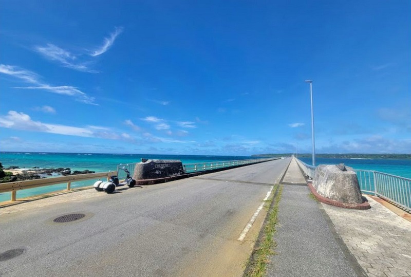 宮古本島と来間島を結ぶ1,690mの「来間大橋」は青い海を渡る農道です