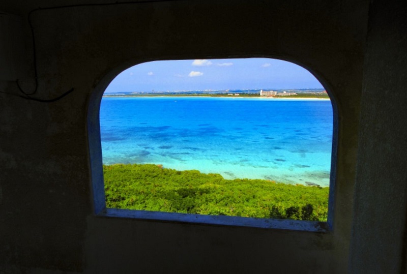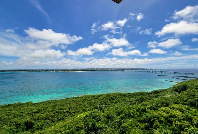 中に入って階段を登って行くと、途中の窓からは宮古島でも1、2を争うような絶景としかいいようのない大パノラマが待っています。