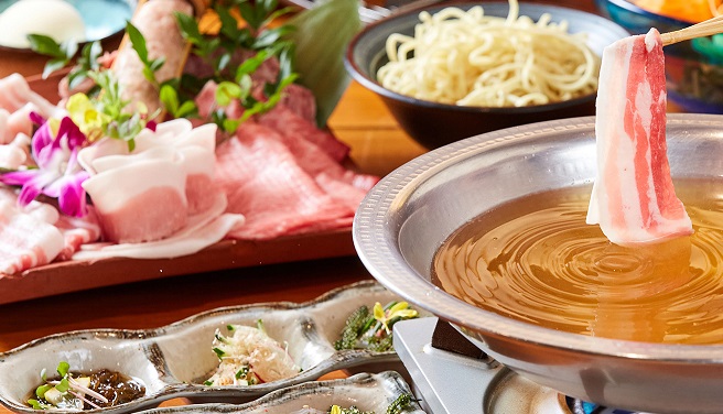 ツアーコード:LNSC1BUS 【美らバス・南部バスご参加者のみお申込み可】しゃぶしゃぶ島豚コース しゃぶしゃぶ島豚コース 開始時間:17:00~22:00 お好きな時間