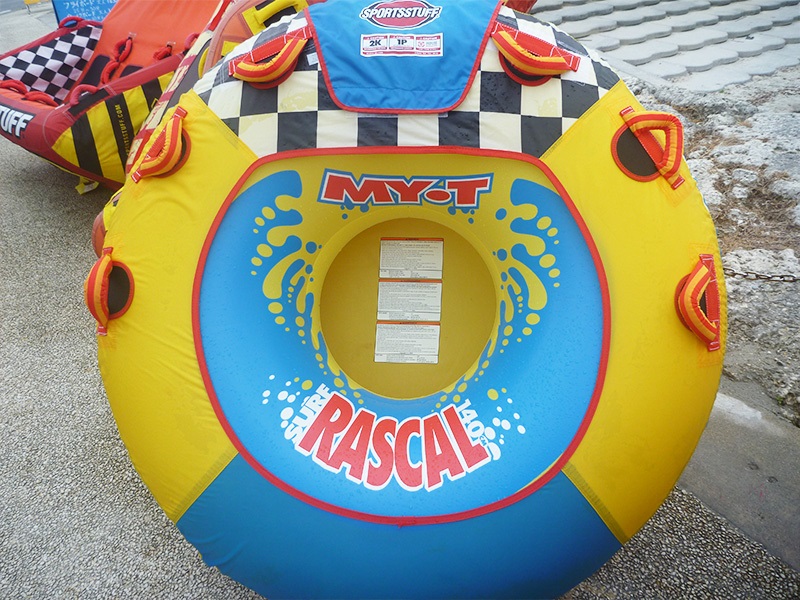 - トーイングとはけん引を意味していて、水上バイクからロープなどで引っ張るチューブのことです。おなじみのバナナボートから、スリル満点なトーイングチューブもあります