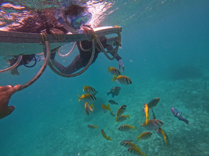 - はい。ご参加可能です。安全のために全員ライフジャケットを着用しますし、スタッフが水面に浮かべた大きなフロートを引っ張りますので、泳げない方や泳ぎが苦手な方でもそのフロートに掴まっていただき水中の世界を鑑賞しながら移動できます。