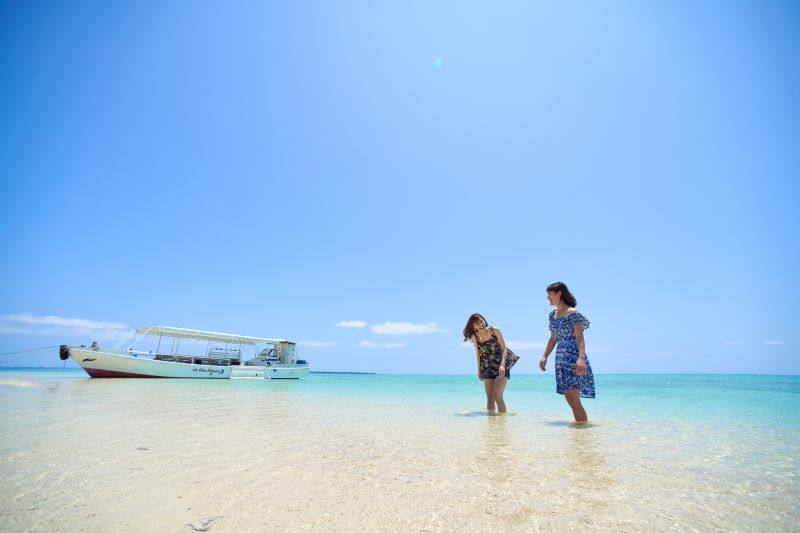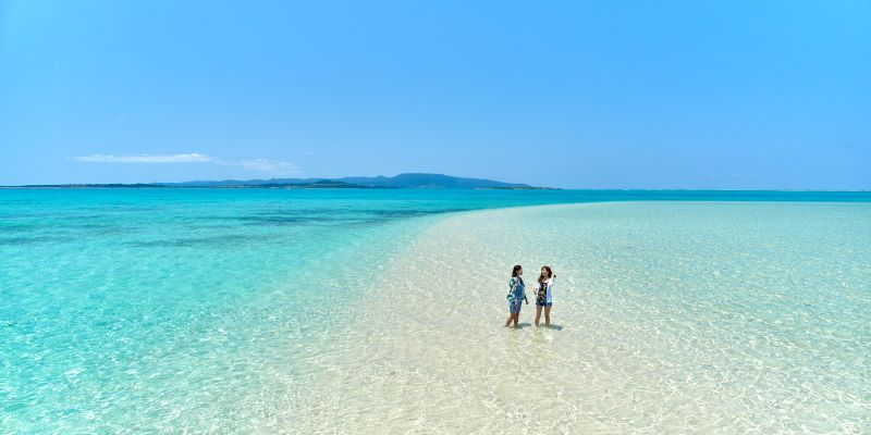 通称が「幻の島(まぼろしのしま)」で、正式名称は「浜島(はまじま)」と呼ぶ、エメラルドグリーンの海に浮かぶ小さな砂浜の島です。 周囲は遠浅の海が広がっているため海の色は絶景で、白い砂浜が広がっているためどこを写真で切り取って撮影してもキレイに映ります。 - 美ら海(ちゅらうみ)の絶景を体験!