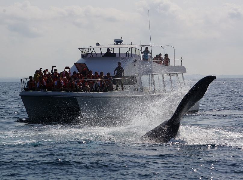 揺れに強い大型のカタマラン船でホエールウォッチングを お楽しみ下さい。