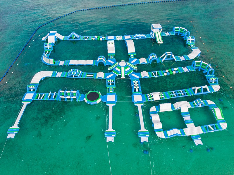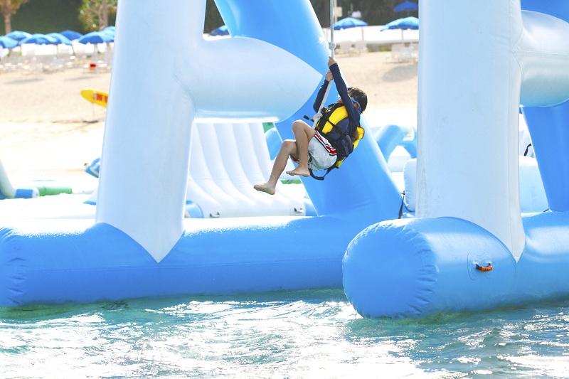 海上パーク内には、すべり台、トランポリン、ロッククライミングなど、大小さまざまなアイテムが設置してあり迫力満点◎