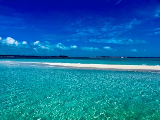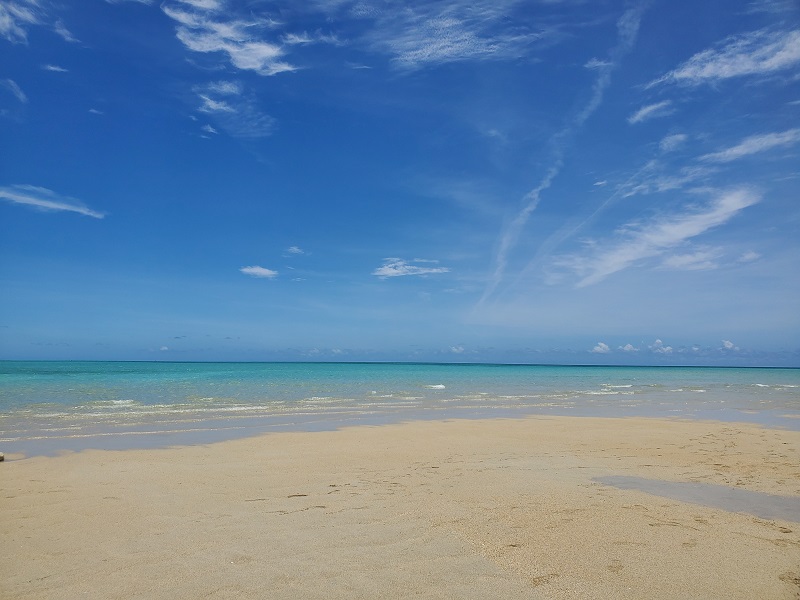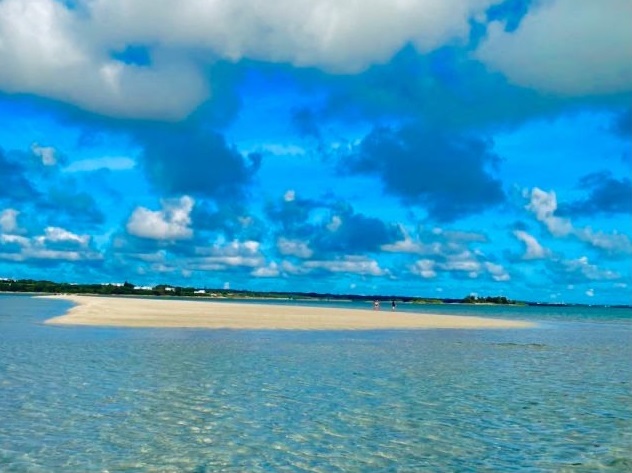 干潮時にのみ姿を現すため幻の島と呼ばれているユニの浜!