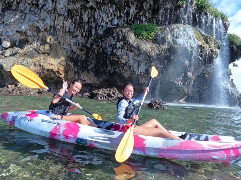ウミガメシュノーケリングとパンプキン鍾乳洞探検(ケイビング)&シーカヤックの1日満喫プラン