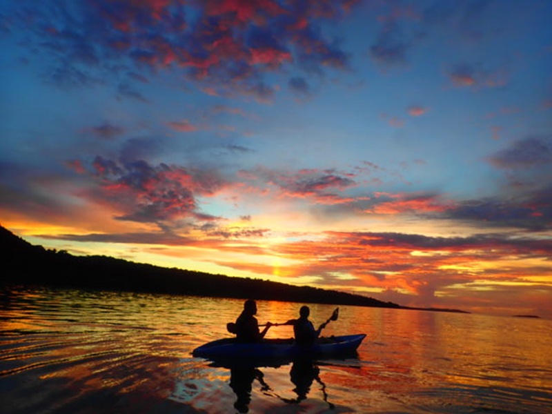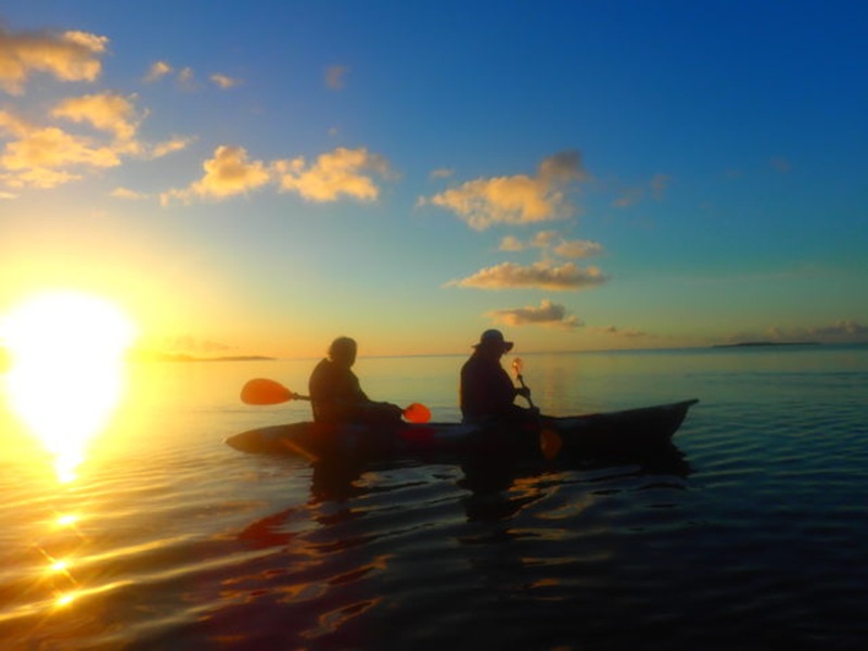 カヌー(カヤック)はSUP以上に安定感がありほぼ落ちることはありません。サンセットツアー終了後そのまま食事に行くことも可能です - 上原地区は無料送迎可能です。