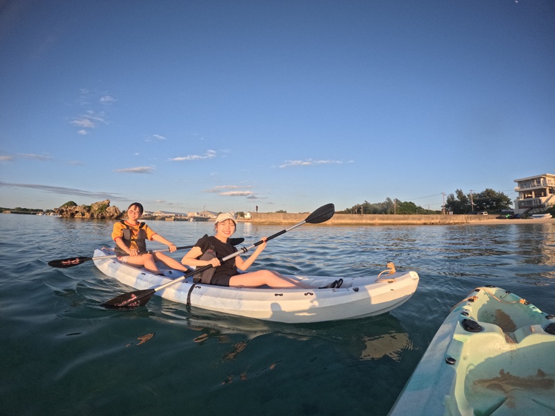 沖縄の青く透き通った海の上をカヤックでのんびりクルージング