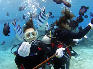 ダイビングライセンスなしでも参加できる「体験ダイビング」は、インストラクター引率の元、3〜5メートルまでの海を潜ることができるアクティビティーです - 泳げなくても大丈夫