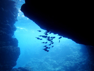 2つ目のポイント「青の洞窟」で体験ダイビング