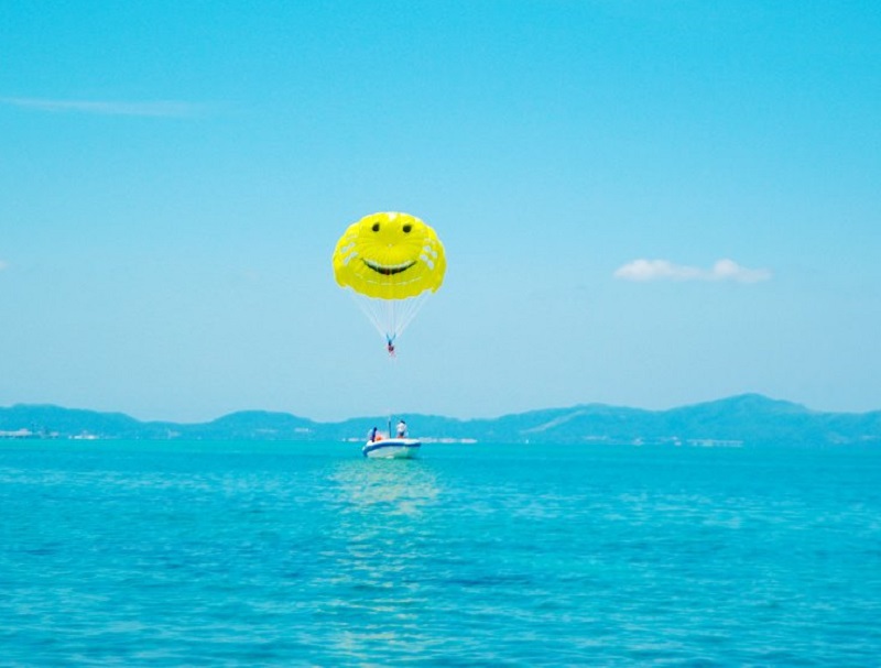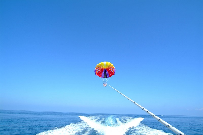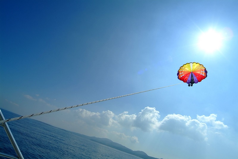 パラセーリング中は、瀬底島だけでなく、近くの水納島(みんなじま)や伊江島(いえじま)といった美しい離島も一緒に見渡すことができ、360度の大パノラマを楽しめます。