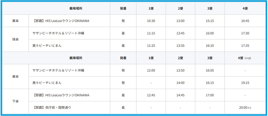 【2便】美々ビーチ15:00➡LeaLeaラウンジ:15:45