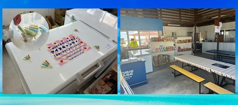 全力で遊んだら、キンキンに冷えた休憩室へエアコン完備&軽食・おやつの売店も完備さらに、うれしいアイスキャンディが食べ放題