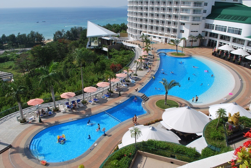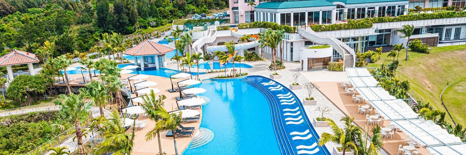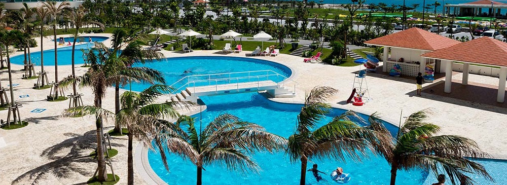 複数のプールやスライダー付きなど夏の沖縄を満喫できます。