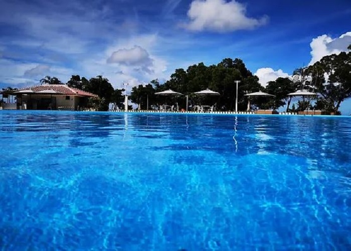 太平洋と東シナ海、眼下に広がる二つの雄大な景色を高台から望むことができバカンス気分が盛り上がるリゾートホテルのプールです。