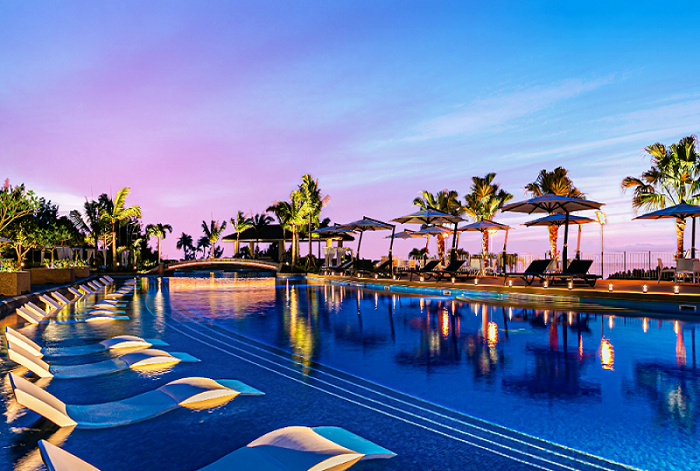 全長170mの広さを誇るガーデンプールには6つのプールとキッズプール、カバナや見晴らしの良いデッキエリアをはじめ、ナイトプールも楽しめます。