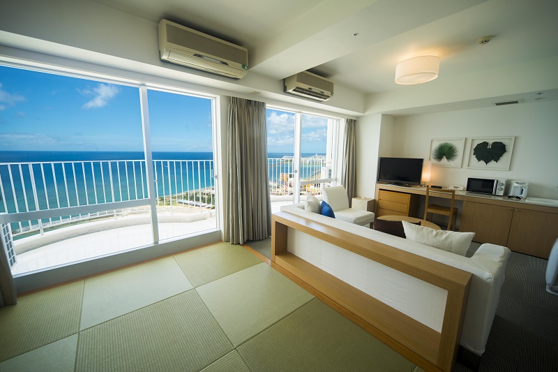 - ホテル目の前は夕陽が美しいサンセットビーチ、ショッピングやグルメを満喫できるアメリカンビレッジなど沖縄を満喫できるロケーション