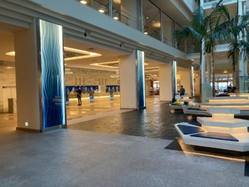 フロントがある一階は天井まで吹き抜けになっていて開放感があります。ホテル棟からビーチやプールなどがとても近く、お子さんがいても移動しやすいなと感じました。