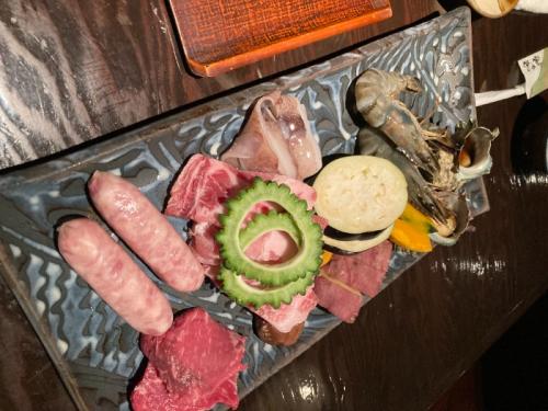 夕食はホテル内レストランの「海風」で炭火焼コース(お肉、お魚が半々づつに野菜が少し)にしました。ボリュームは申し分なかったです。