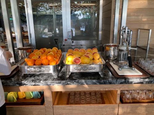 オレンジ・グレープフルーツを好きなだけ絞れるフレッシュジュースコーナーもお子さんが楽しそうに絞っていました。