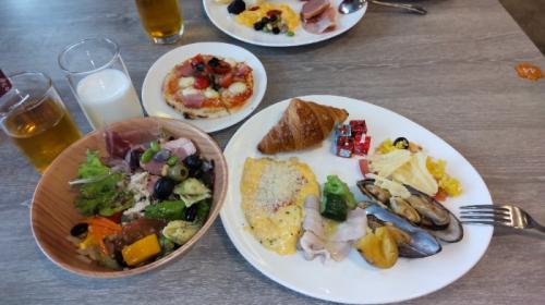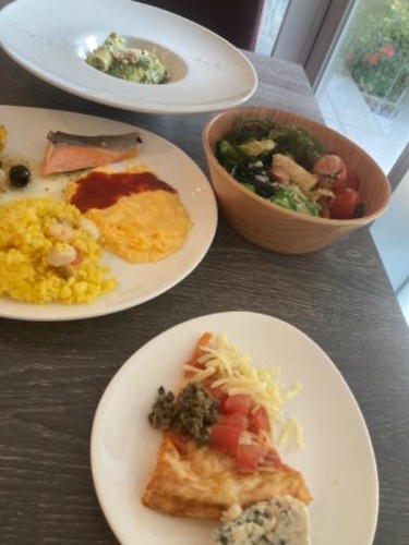 朝食の種類が豊富でした。大きな塊のチーズが4種類あり自分で削って焼きたてピザやパスタにたくさんかけちゃいました。デザートに手作りクレープがありフルーツたくさんのクレープを作って楽しかったです。ぜひまた利用したいです。