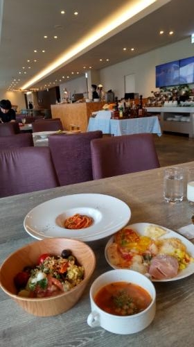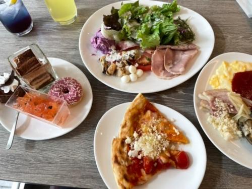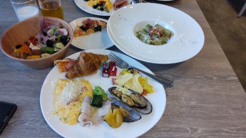 沖縄料理に飽きている人には最高な朝食です、和食が好きな人は白米は無かったと思うので物足りないかもしれませんが、お粥、パエリア、パスタ、多種類のパン、多種類のデザートがあり、前菜系、チーズも多種類あり、バルサミコも変わった種類があり、サラダにかけたら美味しかったです。また食べに行きたいです。