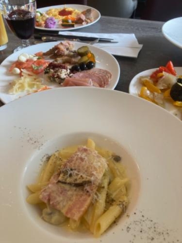 サムズのディナーはとても豪華でとても美味しく食べられない量でした(お店の方には申し訳ない)さらにホテルはキレイで、朝食もオシャレな食べ物がたくさんあり、その中でも出来立てのパスタが食べられとても美味しくて感動しました。最高な宿泊プランで満足です。