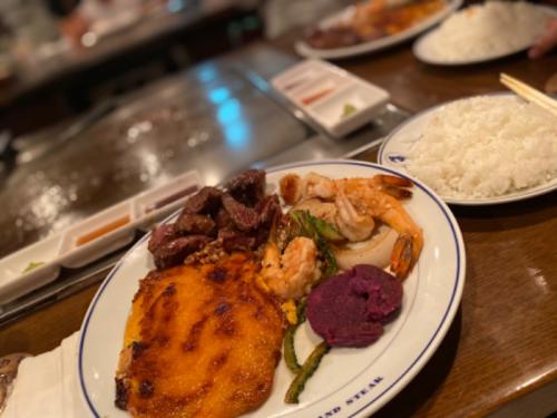 サムズのディナーはエビは美味しかったけど、お肉はかたくて、パサパサでした。目の前でのパフォーマンスは1度で十分、普通にゆっくり食べたい人には向きませんので、次回は違うプランで利用したいです。