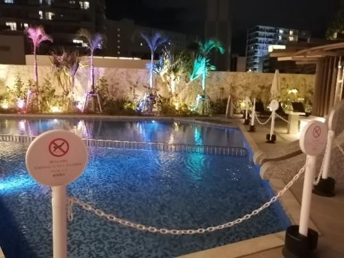 お部屋はお茶やコーヒーなどは無くベッドがあるだけの狭い作りですが、土足禁止でビニール畳がひいてあり電源なども必要数確保されており効率的に作られております。駐車場は少なく車移動がメインの沖縄でキャパに対して圧倒的に少なく残念です。館内イベントなどもあり、企業努力を感じます。家族連れやコスパ重視の方には非常に良いホテルだと思います。しかしながら2階のフリードリンク、アイス食べ放題のフロアと繋がっているためサービス品をトレイで自分の部屋へ持ち運んだり、飲食物持込不可のプールに持って行ったり、濡れたまま水着でウロウロしてはそのままフリースペースの椅子に座ったりと利用されている方々のモラルの低さが目立ちます。
