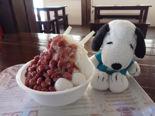 出口付近のお店でブルーシールアイスが食べられますが、おすすめは沖縄ぜんざいです。基本のぜんざいは400円でトッピングがプラス50円でした。