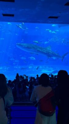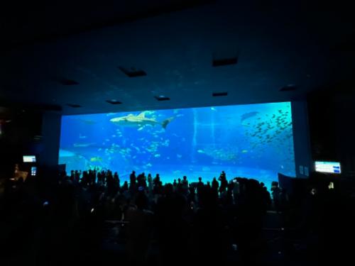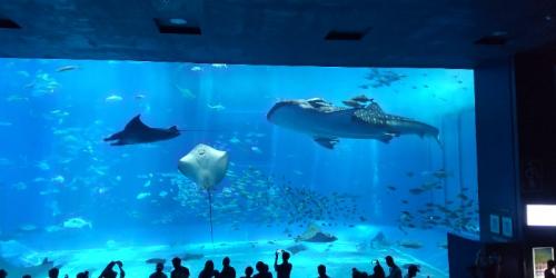 美ら海水族館は、ジンベイザメの大きさに子供たちが楽しそうに話してました。