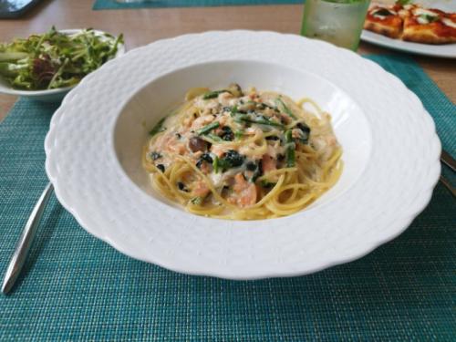 ランチメニューは、ピザがパスタが選べる、サラダ、ドリンク、デザート付きのセットでした。子供はキッズセットでした。