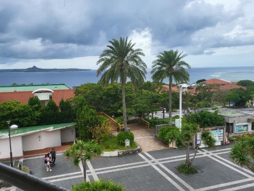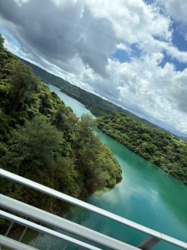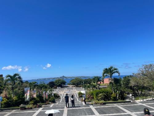 古宇利オーシャンタワーの展望からの景色がステキでした。美らバスと沖縄の海が一望出来たので写真を撮りました。
