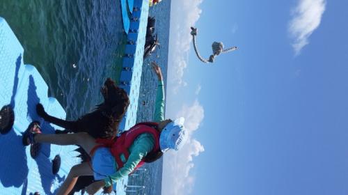 午前中はビーチアスレチックで遊び、午後はおきなわワールドへ行くツアーでした。