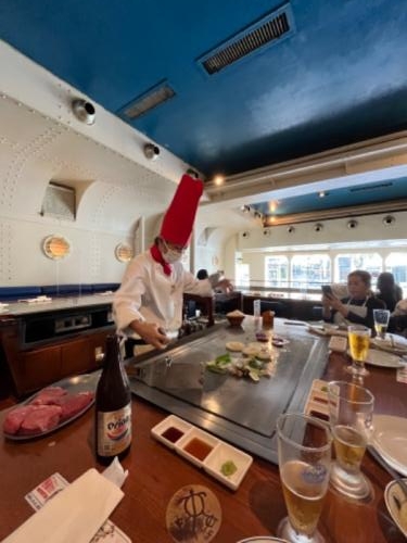 そして老舗ステーキハウスのサムズで、パフォーマンスを見ながら豪華なディナー!